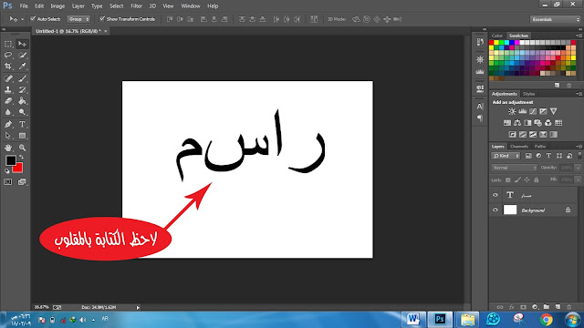 حل مشكلة الكتابة المعكوسة عند الكتابة ببرنامج الفوتوشوب موقع فسفس