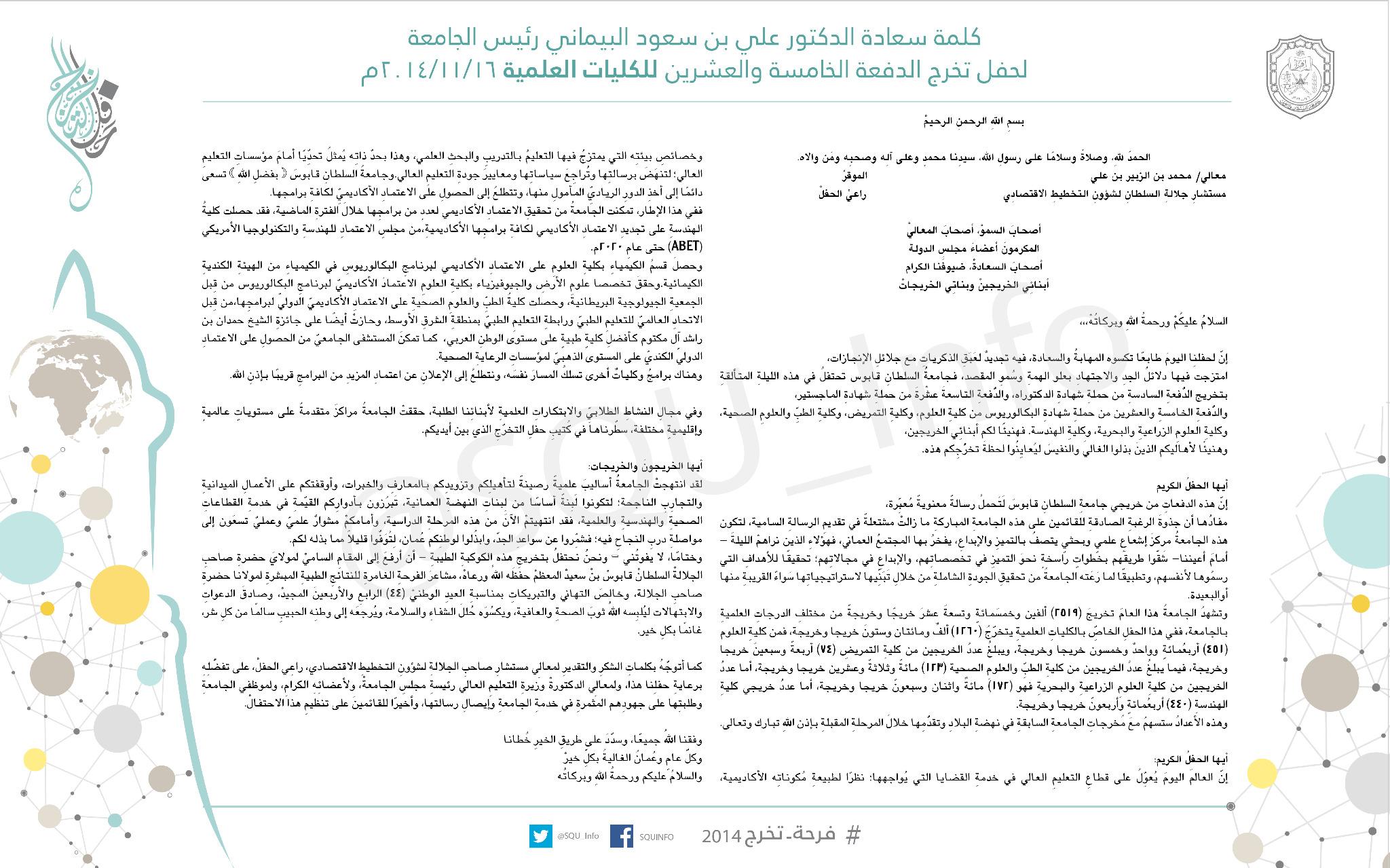 جامعة السلطان قابوس On Twitter نص كلمة رئيس الجامعة في حفل تخرج