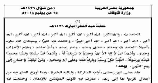 خطبة عيد الفطر المبارك 1439 هـ مكتوبة 2018 قصيرة بصيغة Pdf للطباعه