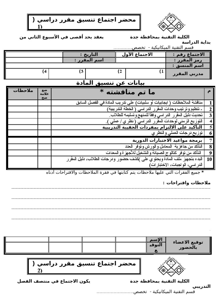 نموذج محضر اجتماع Doc